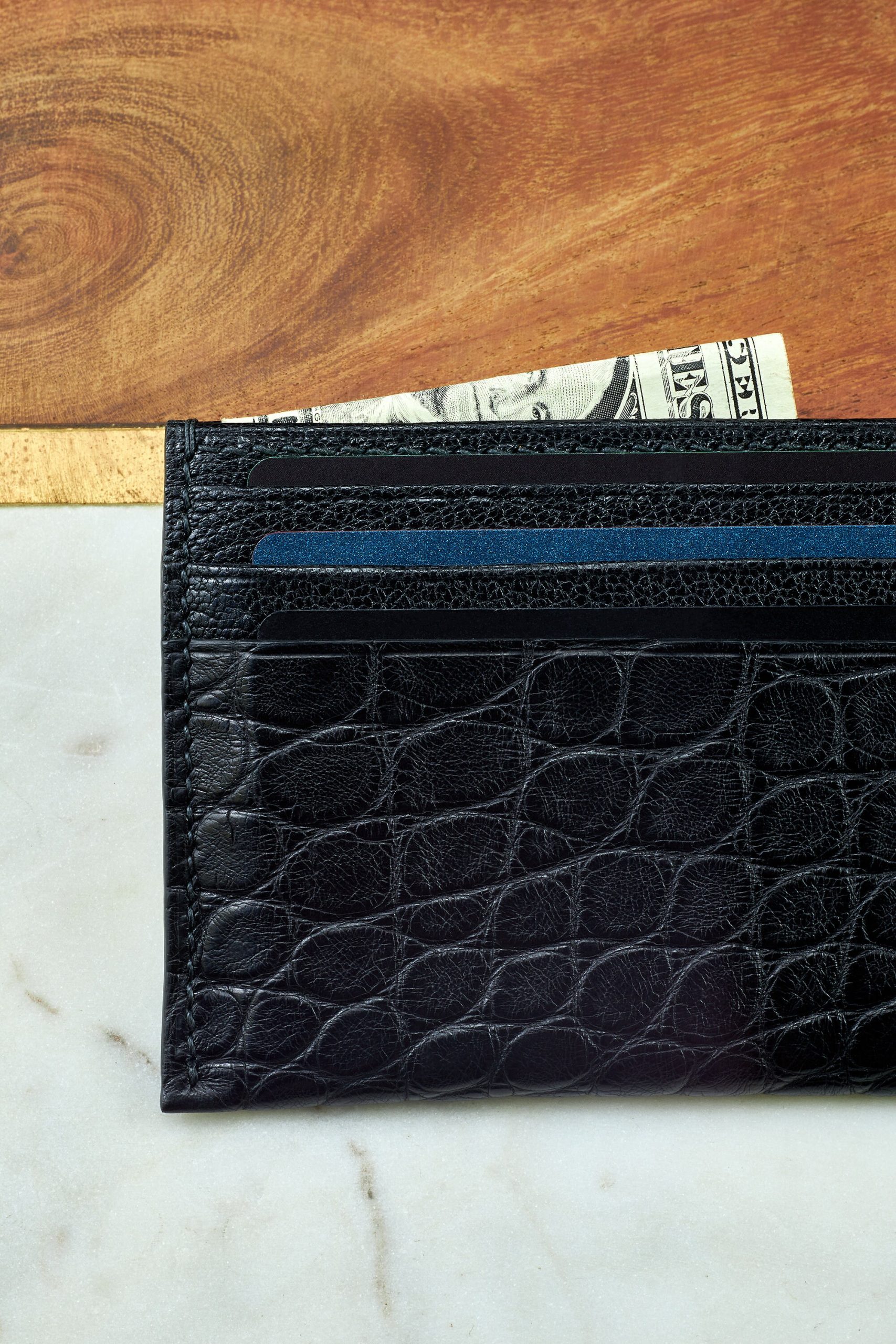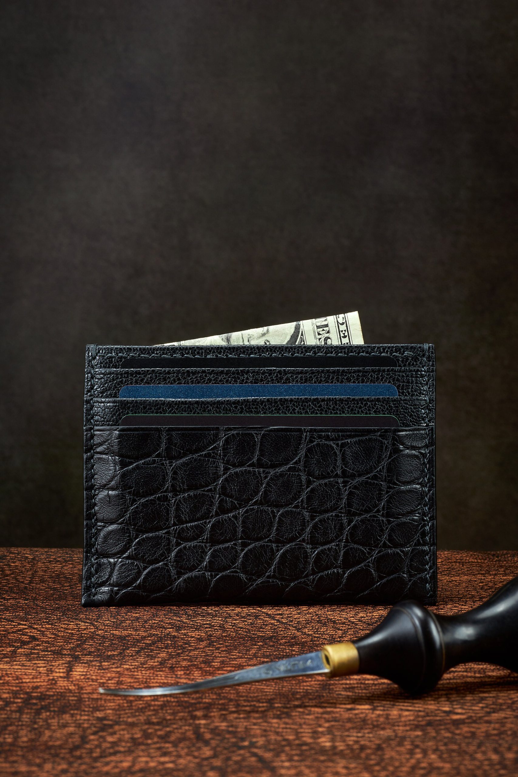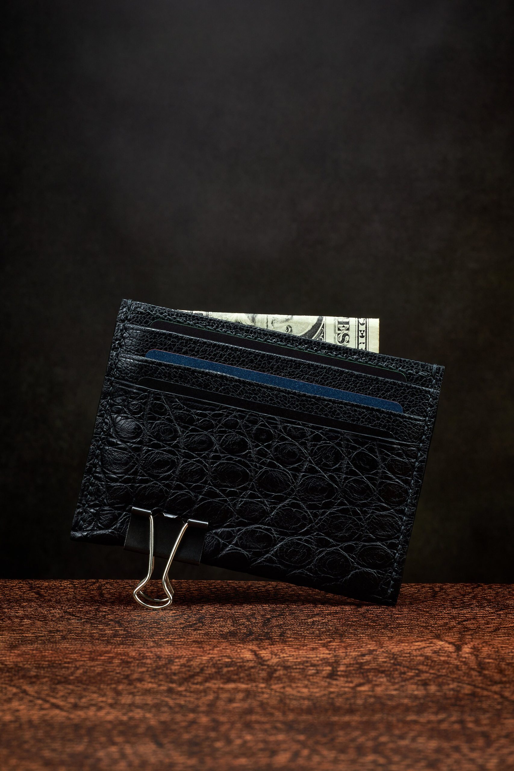 – Made of real ethically sourced Black Alligator and black thin goat leather.