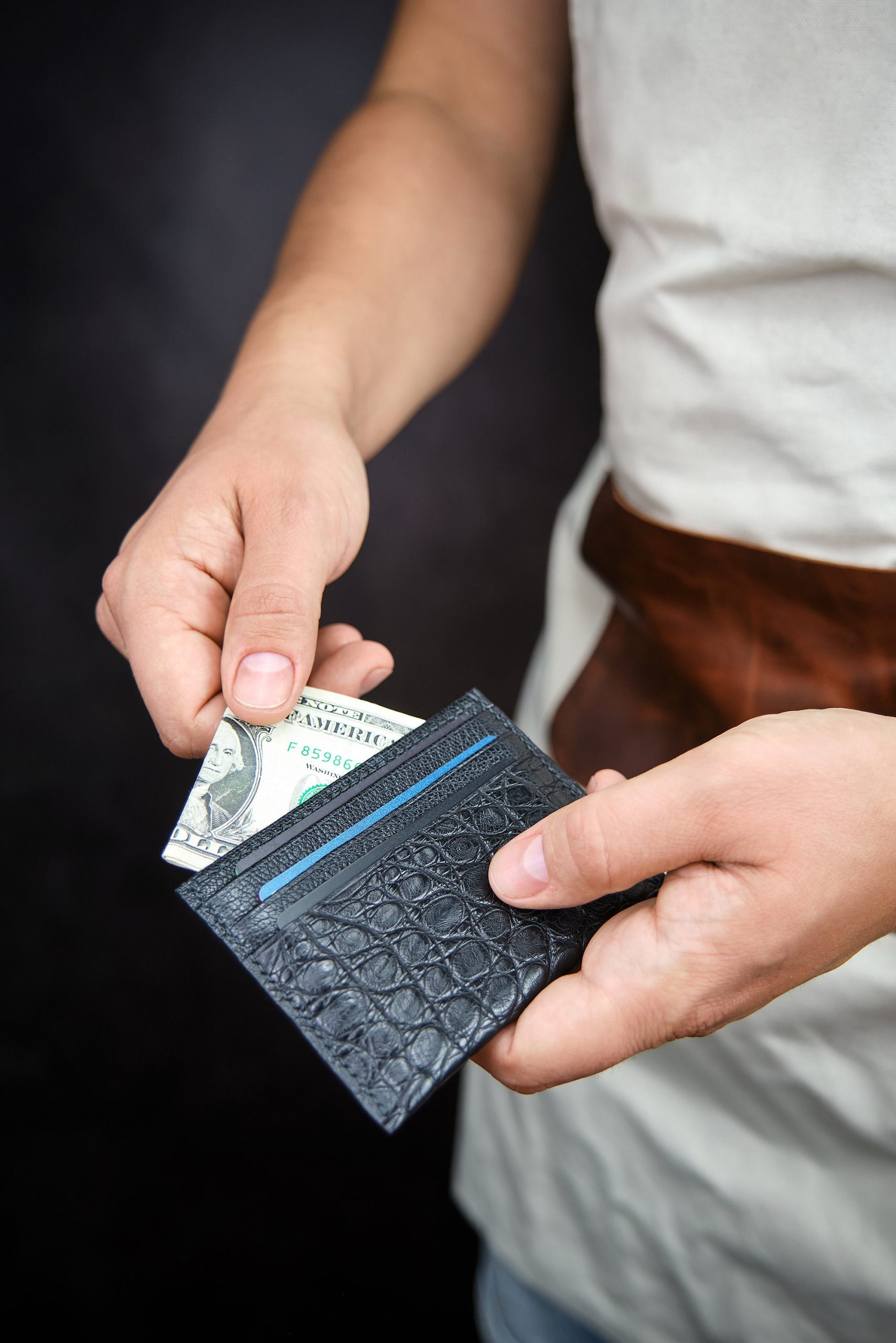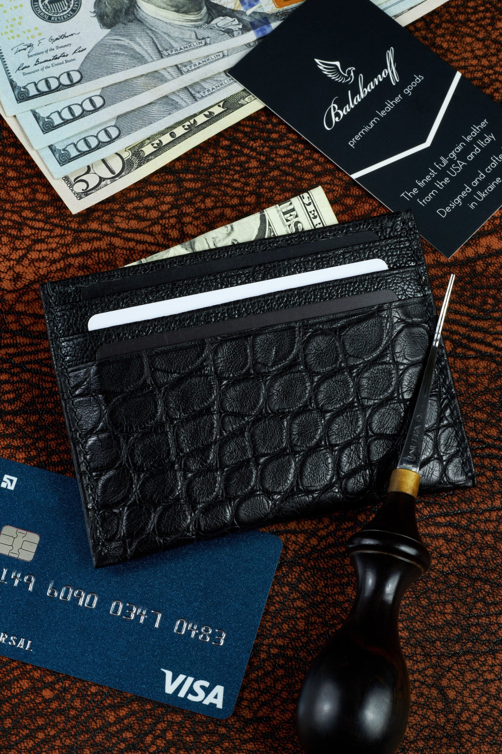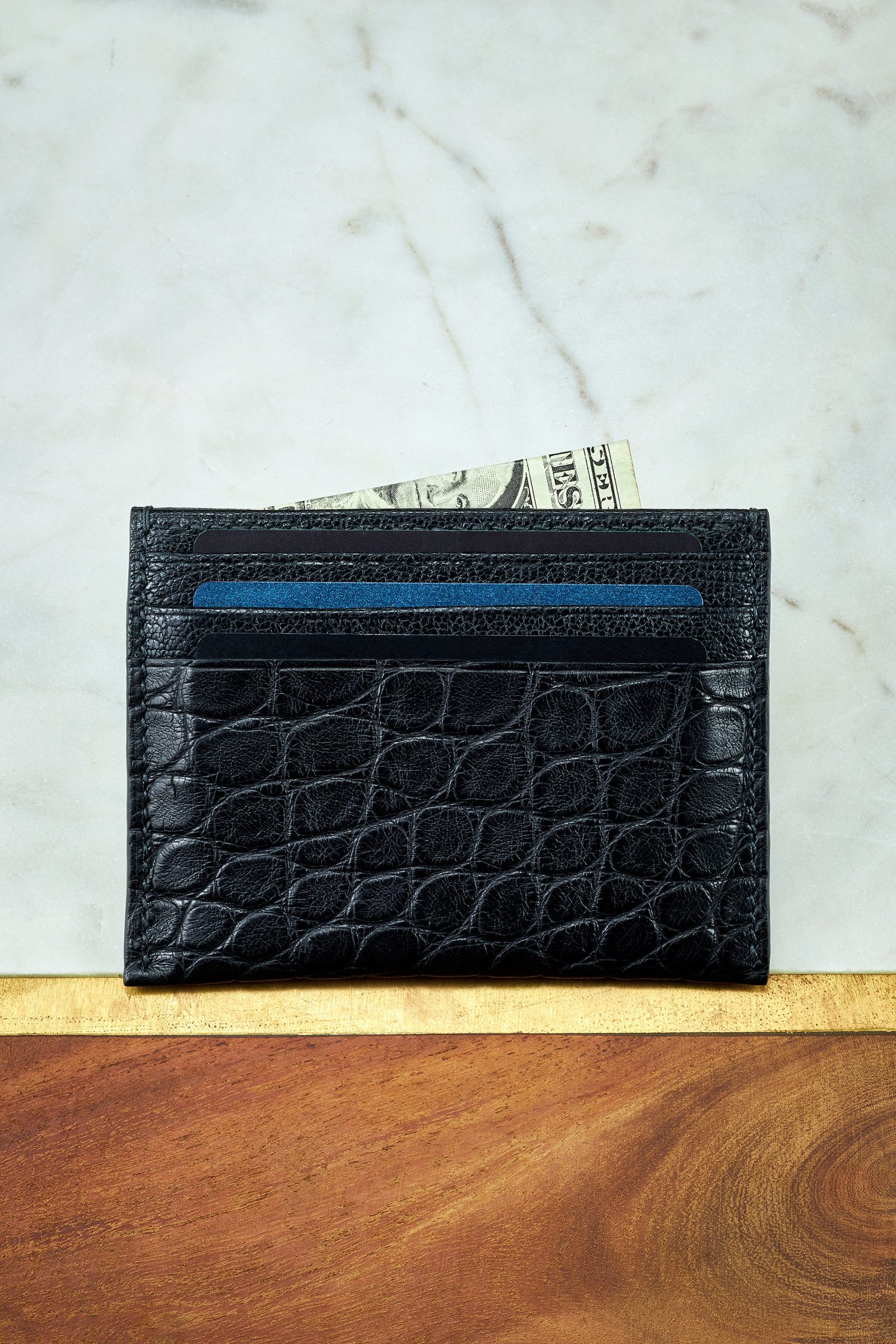 – Made of real ethically sourced Black Alligator and black thin goat leather.