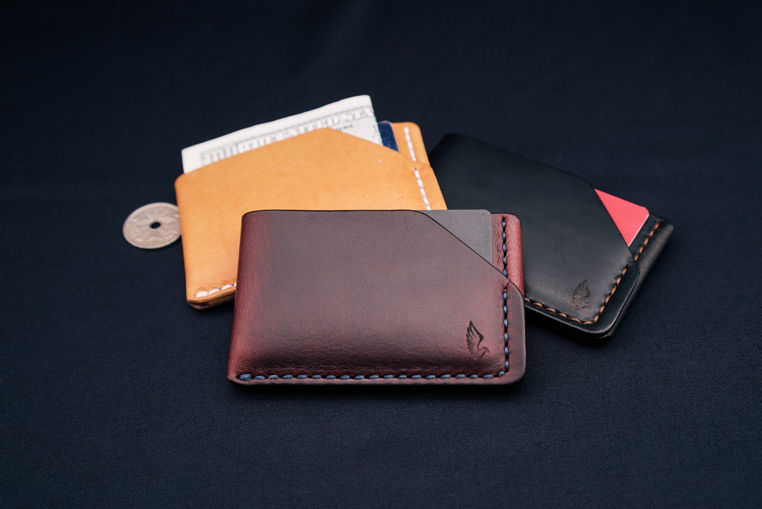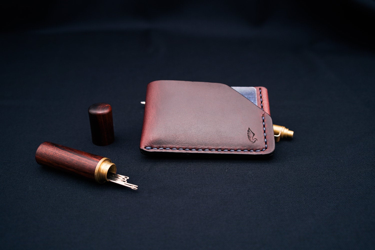 Horween Leather Card Holder Wallet In Burgundy Chromexcel